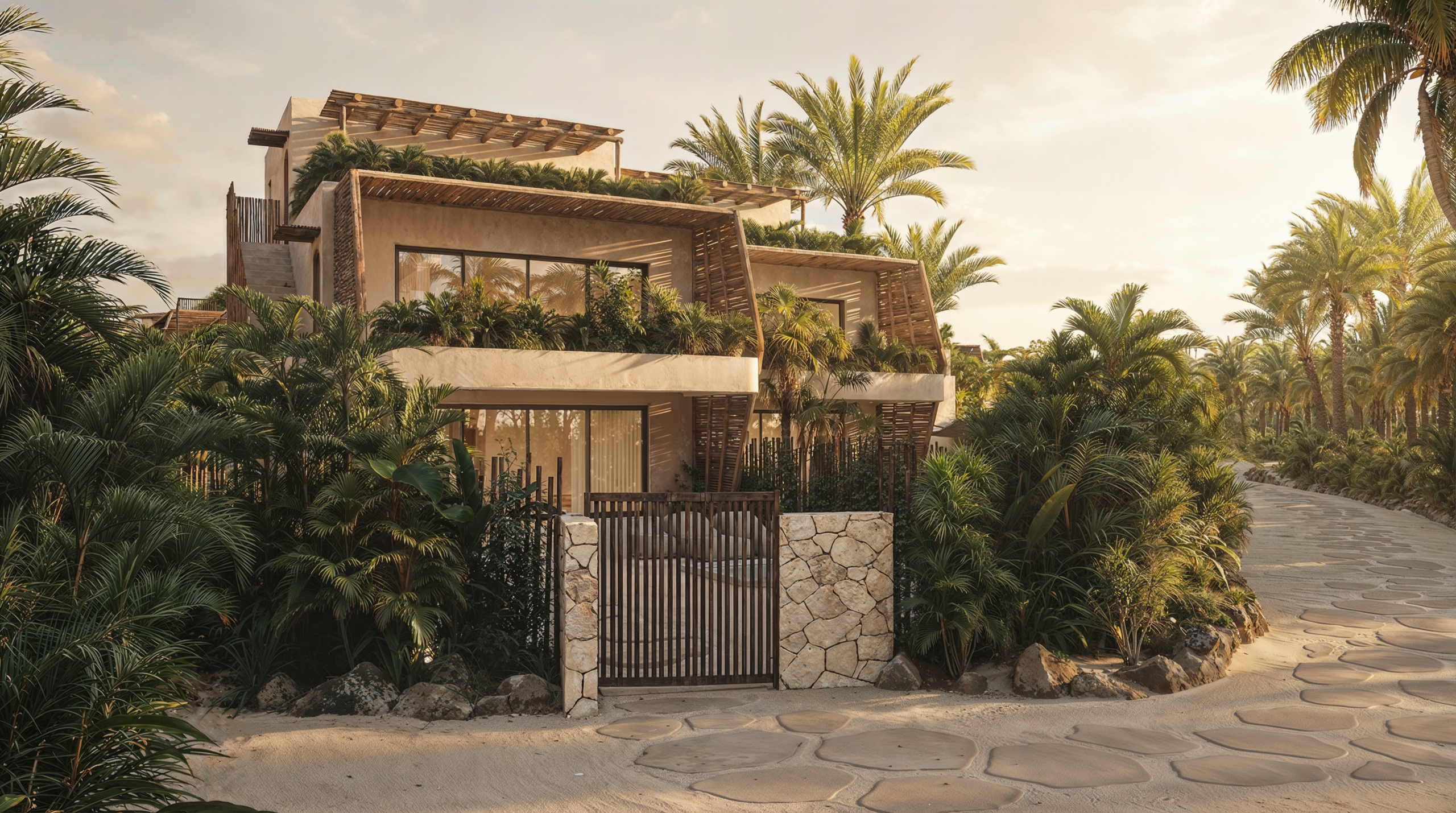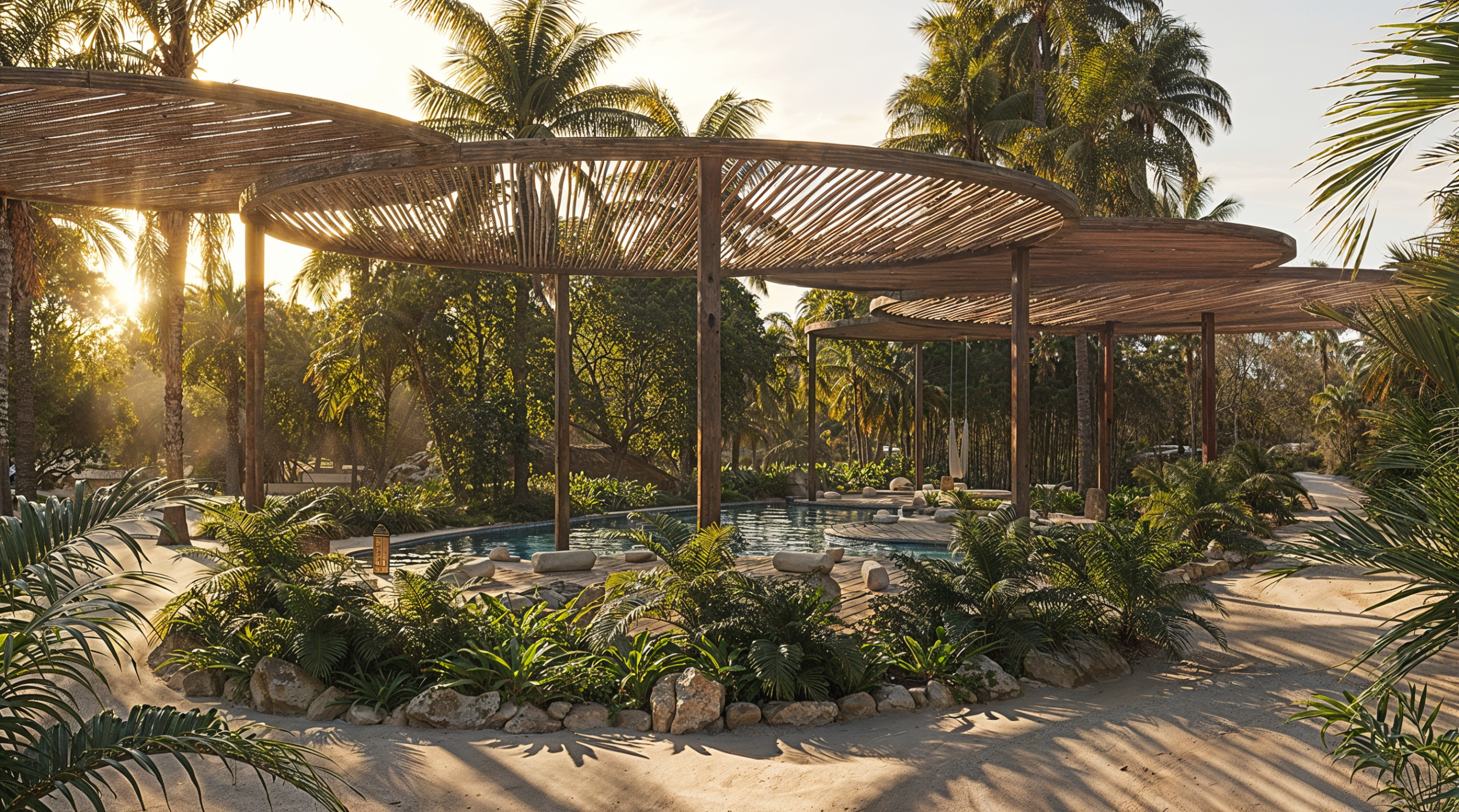 La arquitectura se inspira en la cultura local, reinterpretando sus formas, materiales y rituales para transformarlos en experiencias contemporáneas. Aquí, la luz, la vegetación y el sonido del mar no son solo el paisaje alrededor del proyecto… son parte integral de él.